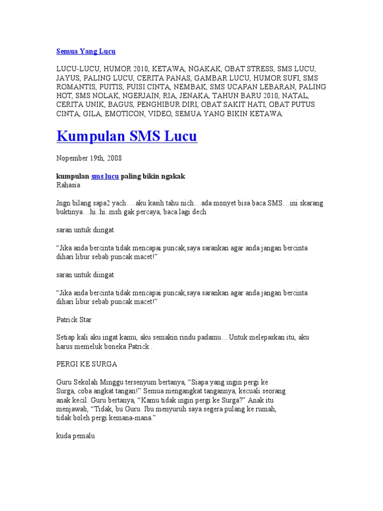 Arsip cerita lucu dan humor kategori Bakusedu Manado berisi gambar lucu sms lucu teka-teki lucu jokes ngakak ketawa-ketiwi gurauan jenaka guyonan dagelan. Cerita Humor Lucu Pendek. Cerita Lucu Sunda Kaos Kaki Ninja.